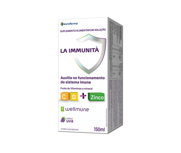 La Imnunitá® é um suplemento alimentar, sabor uva, que contém nutrientes que auxiliam o sistema imune de crianças e adolescentes. Entre os ingredientes premium, contém WELLMUNE® que é uma Beta-glucana, derivada de uma levedura chamada Saccharomyces cerevisiae.