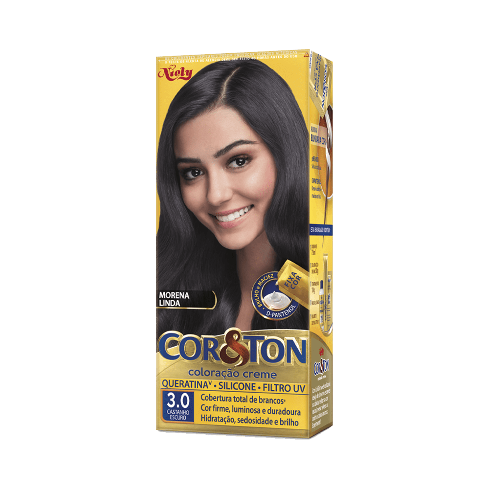 Descrição:Coloração permanente, com tratamento extra que dá mais brilho a cor do cabelo, possui queratina, silicone e filtro V. Modo de Uso:Seguir informações contidas na embalagem do produto
